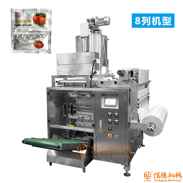 多列四邊封液體包裝機可以用于包裝液體類物料:如:牛奶、番茄醬、洗發(fā)水、面霜、油、醬料、果凍、奶油、黃油等液體。
