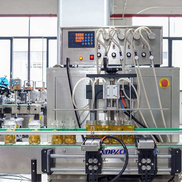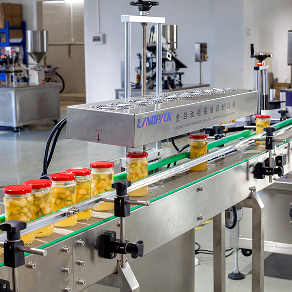 食品生產(chǎn)線主要工序:理瓶、電子稱稱重計(jì)量、灌裝下料、灌裝汁水、自動(dòng)上蓋、自動(dòng)旋蓋、鋁箔封口、貼標(biāo)簽、收瓶。適用于水果罐頭、腌蘿卜、泡椒、腌黃瓜、腌蒜、嫩姜、七彩椒、腌制食品等帶汁水的食物。