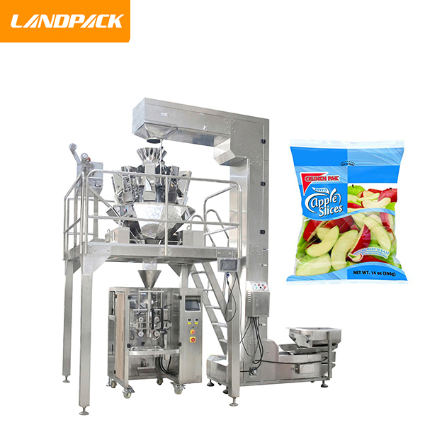 脫水果蔬包裝機(jī)是我司針對(duì)市場上一些香蕉干、蘋果片、香蕉片、脆片等類型的油炸食品而研發(fā)的一款自動(dòng)稱重包裝機(jī),該機(jī)由立式包裝機(jī)主機(jī)、10頭電子組合稱、Z型物料提升機(jī)、工作支撐平臺(tái)、成品輸送機(jī)、氮?dú)鈾C(jī)組合而成。這臺(tái)機(jī)器的工作流程是:工作人員把需要包裝的蘋果片、香蕉片等物料倒入震動(dòng)儲(chǔ)料斗當(dāng)中,通過Z型上料機(jī),把香蕉干輸送到10頭電子稱當(dāng)中進(jìn)行自動(dòng)稱重,然后經(jīng)過下料、填充、充氮?dú)狻⒎饪?,成品輸出等一系列環(huán)節(jié)全自動(dòng)完成包裝過程。