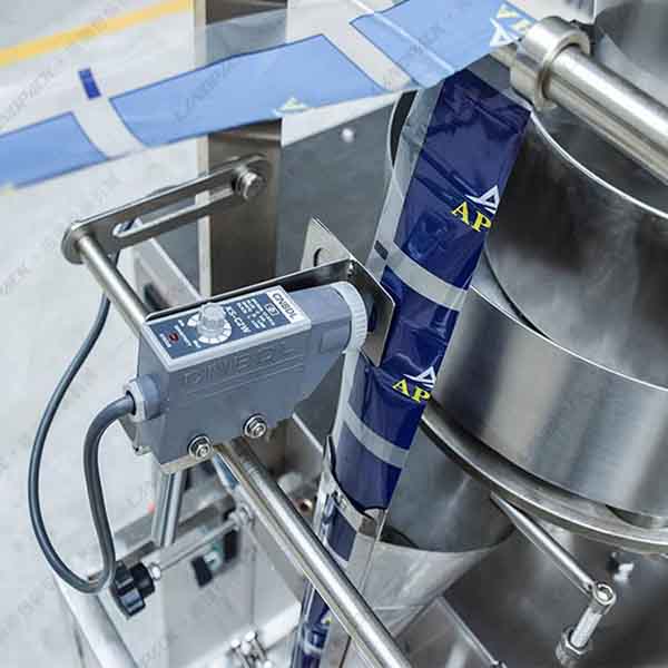 3、采用優(yōu)質(zhì)光電開關(guān)(電眼)對(duì)印刷在包裝材料上的色碼進(jìn)行檢測(cè)和定位,使包裝成品能夠獲得完整的商標(biāo)圖案(智能光電色碼定位控制系統(tǒng)能夠自動(dòng)消除色碼圖案異常和印刷不良造成的干擾信號(hào)的影響,操作穩(wěn)定可靠。)
